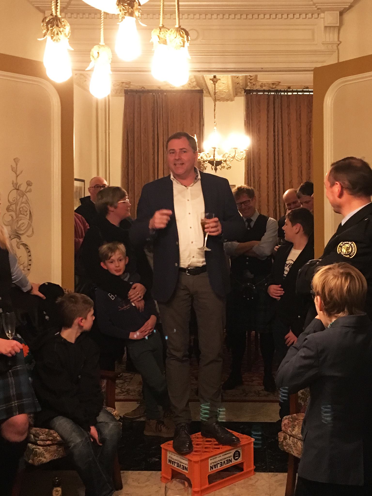 We openden 2019 met de traditionele Nieuwjaarsreceptie. Dit jaar in een speciale setting, het Poperingse museum Talbot House - Every man's club (ontspanningsoord voor Engelse soldaten in WOI). Met een hapje & drankje, een woordje van voorzitter Dries & Burgemeester van Poperinge Christof Dejaegher werd het FMPB jaar alvast goed ingezet! Met de uitreiking van de ‘Flandrien van het Jaar’ & de Gold & Silver Chanter & Sticks voor de spelers met het meest aantal optredens, door Pipe Major Ben, werden 5 van onze leden in de kijker gezet.