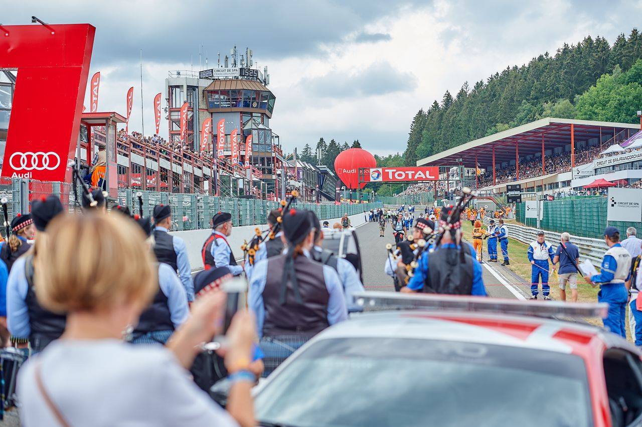 De West Coast Pipe Band & Flanders Memorial Pipe Band geven het startschot voor de race.